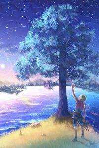 他俯下身,将画上的冰渣抹去,手指不停摩挲在笔触上。